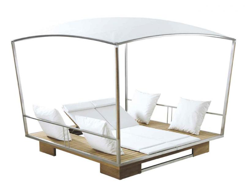 Buiten zitten is leuk. Maar liggen is nog beter! Je moet zelfs niet meer naar je slaapkamer. Now's home ontwierp het Day Bed' in massief teakhout, overdekt met een stoffen gewelf.(prijs op aanvraag)