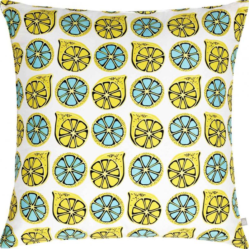 Habitat blijft liever op het Oude Continent en trekt naar de felbegeerde Middellandse Zee. Het Franse merk bestrooit zijn Citrus' kussen met blauwe en gele citroenen. (18,90 euro)