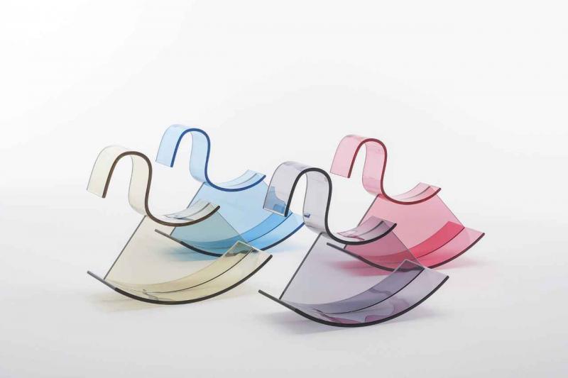 Voor dit schommelpaard van Kartell liet de Japanse designstudio Nendo zich inspireren door de vorm van de H beams', de stalen balken die gebruikt worden in wolkenkrabbers.