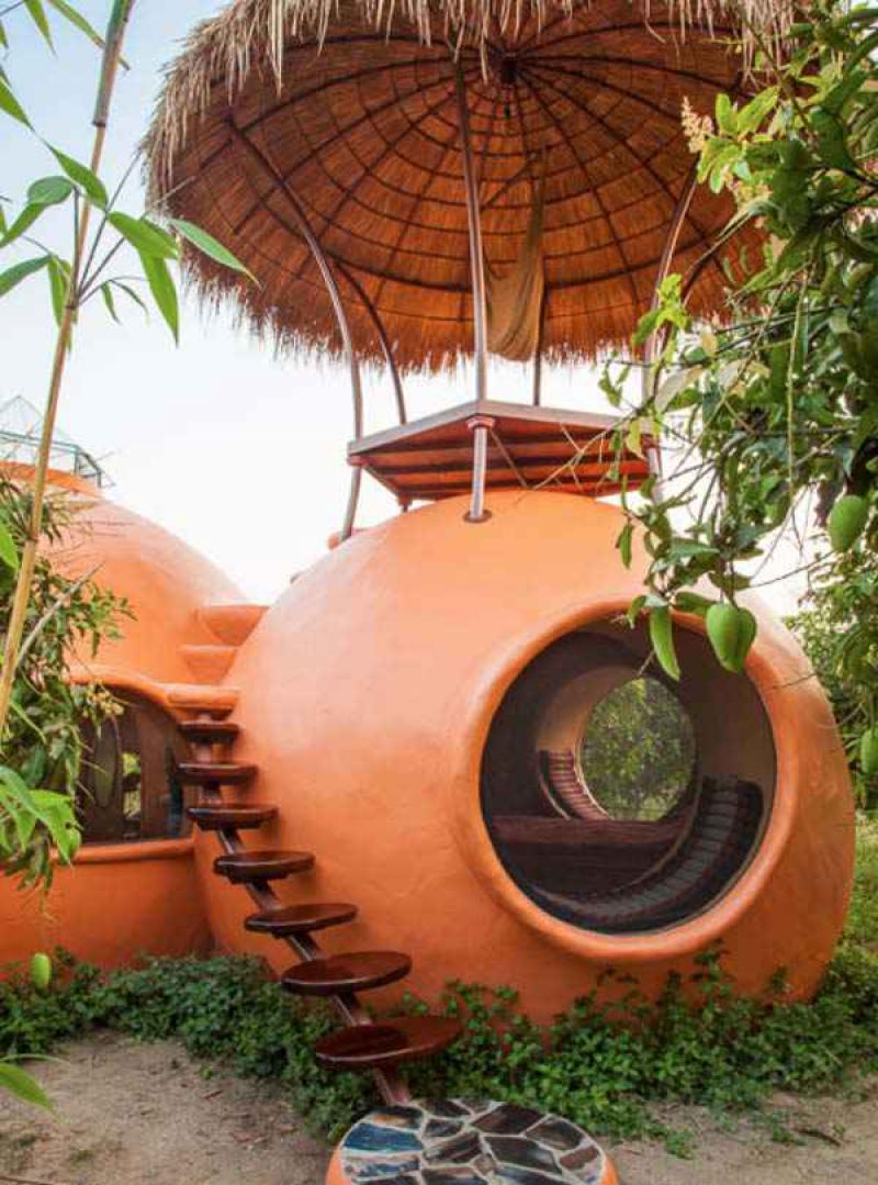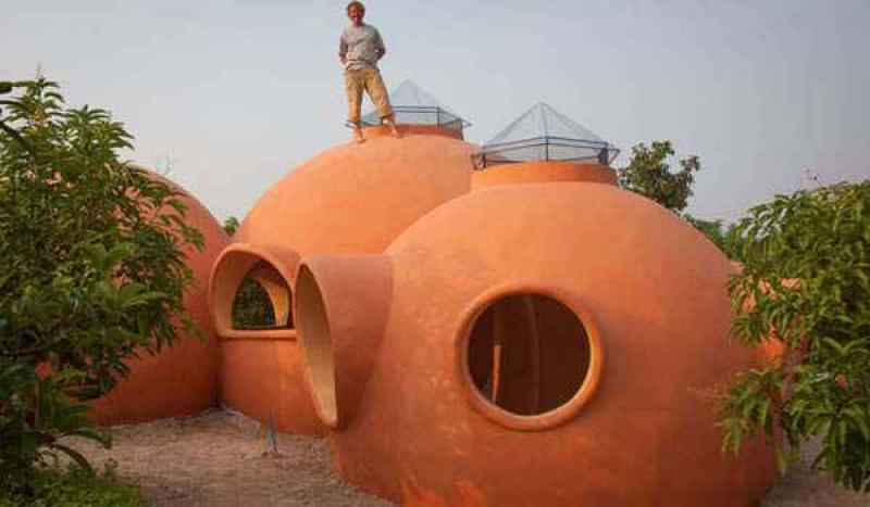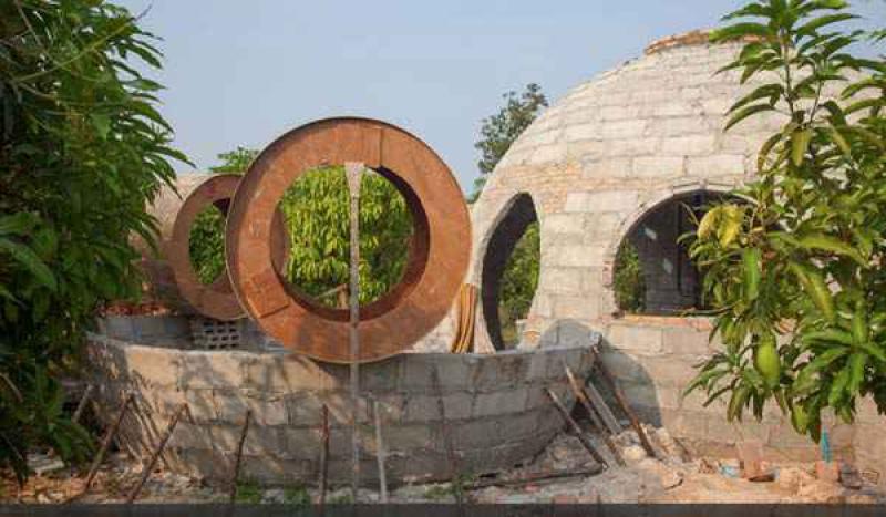 Hajjar Gibran heeft een koepel-bouwbedrijf in Thailand waar je workshops kan volgen om je eigen koepelhuis te bouwen.