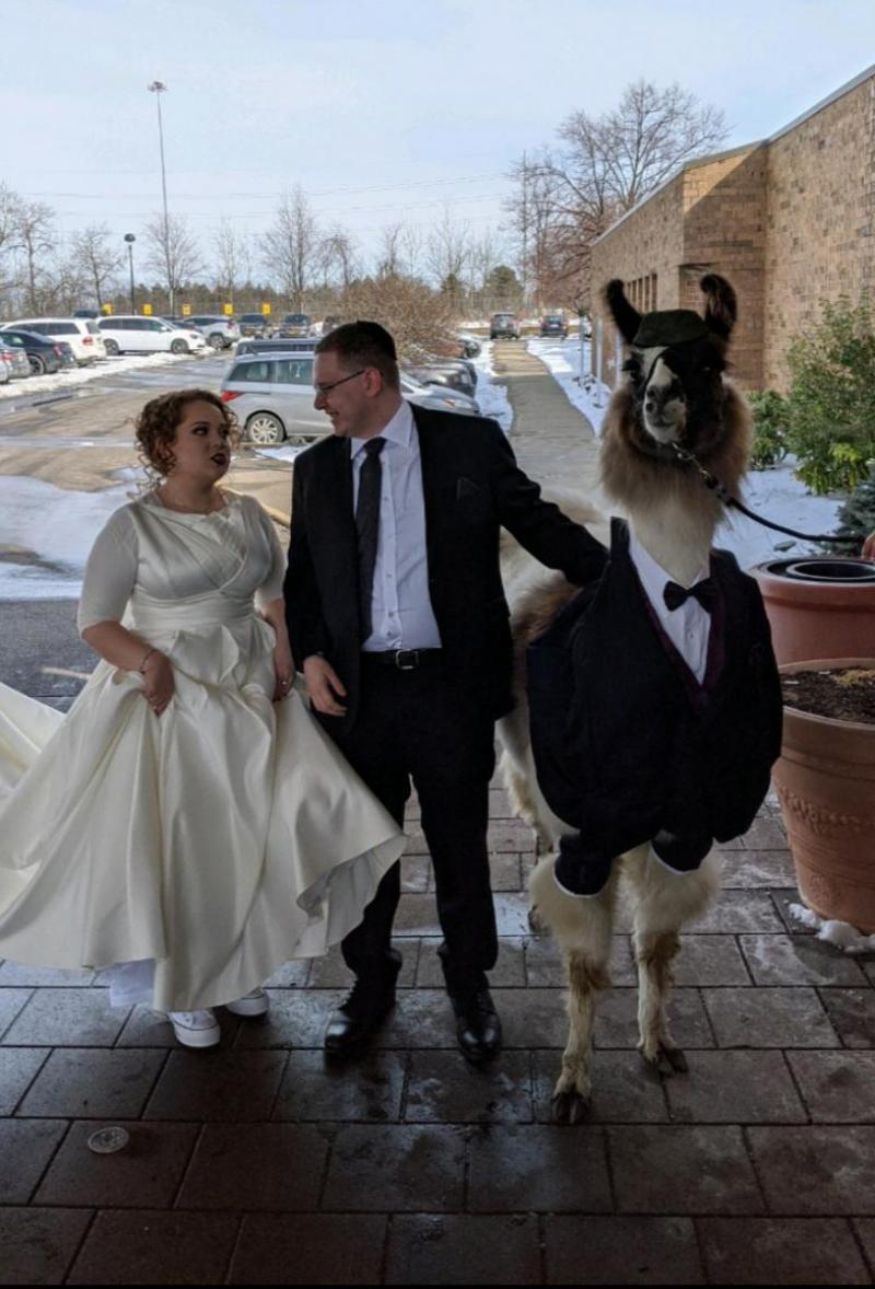 Een tijdje later kwam Riva de man van haar leven tegen en in oktober 2019 werd ze door hem ten huwelijk gevraagd. Afgelopen zondag stapte Riva in het huwelijksbootje met haar echtgenoot. Haar broer Mendl was uiteraard ook van de partij, maar hij was niet alleen Als hij zijn zinnen op iets gezet heeft, doet hij het. Toen ik hem belde om hem te zeggen dat ik verloofd was, reageerde hij: Super, ik bel de lamaboerderij meteen'. Nog geen uur later stuurde hij me een bericht waarin stond dat de lama geboekt was, vertelde ze aan Insider.