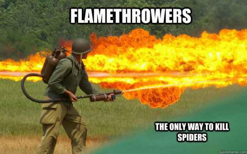 Een man uit Seattle heeft zijn huis afgebrand toen hij een spin wilde doden met een geïmproviseerde vlammenwerper. De man zag de spin op de muur van zijn wasruimte kruipen en hij nam meteen zijn toevlucht tot een aansteker en een spuitbus om het beestje te doden.
