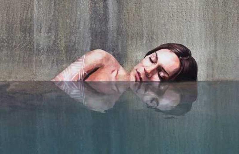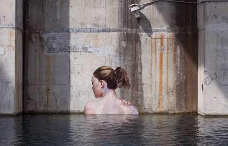 Doordat de tekeningen op muren komen die met het water in aanraking komen, lijkt het erop dat de vrouwen die hij afbeeldt zich grotendeels in het water bevinden. Het resultaat is verbluffend.