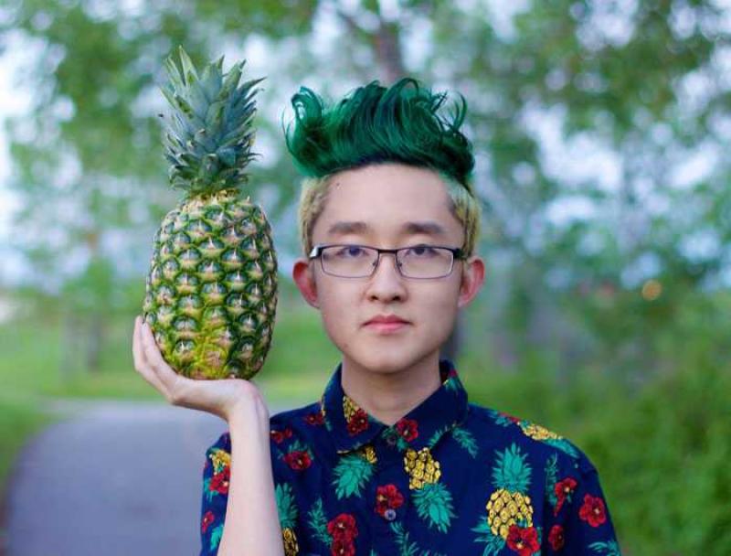 Hansel Qiu, een 20-jarige student aan de Universiteit van Calgary in Canada, verloor een weddenschap met zijn nicht en eindigde zo met haar dat lijkt op een ananas.