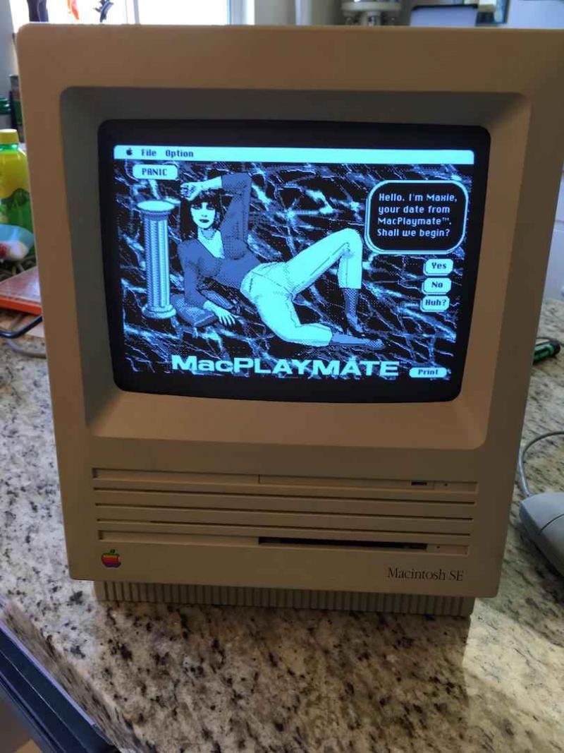 Wowbowwow, een gebruiker van het forum Reddit, deed een interessante ontdekking toen hij bij een verzamelaar een oude Macintosh ging oppikken. De pc wou eerst niet opstarten, maar na wat gepruts werd hij begroet door een Steven Hawking-achtige stem en kon hij beginnen neuzen door de computer. Hij stootte op een map met daarin een aantal heel interessante bestanden en programma's. Hun naam: MacPlaymate.