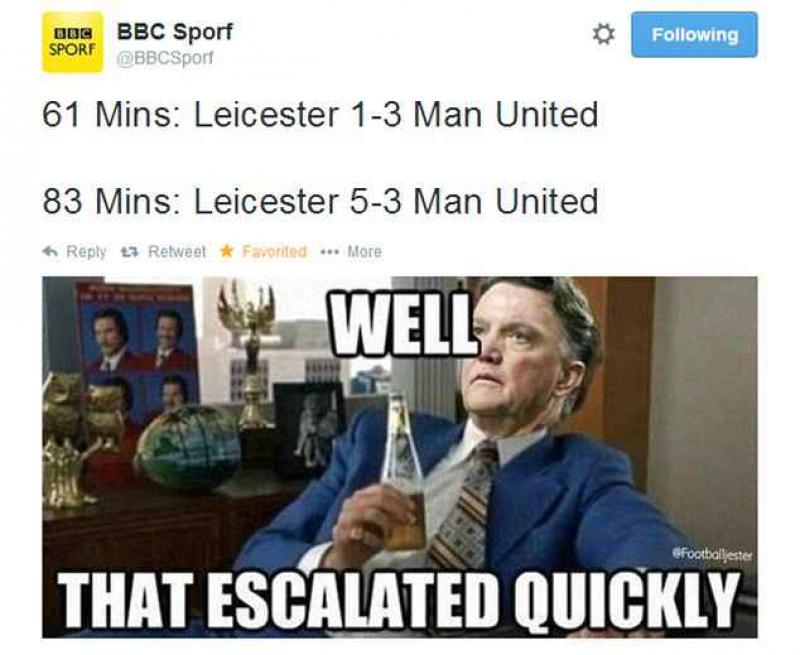 Het was de eerste keer in de Premier League-geschiedenis dat Manchester United een voorsprong van twee doelpunten omgekeerd zag worden in een verlies. Een prestatie die de voorganger van Van Gaal, David Moyes, zelfs niet bereikte in zijn kortstondige passage bij de club.