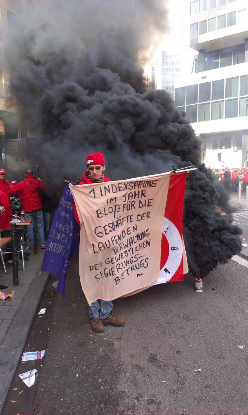 «Dit is nog maar het begin», waarschuwde ABVV-topman Rudy De Leeuw gisteren tijdens de militantenconcentratie' in hartje Brussel. Ook het ACV en de ACLVB staan achter de nieuwe acties. Hoewel ACV-secretaris Marie-Hélène Ska door de ABVV-militanten werd uitgefloten, benadrukten de toplui dat het gezamenlijk vakbondsfront geen scheuren vertoont. «Vastberaden gaan we door met de strijd.»