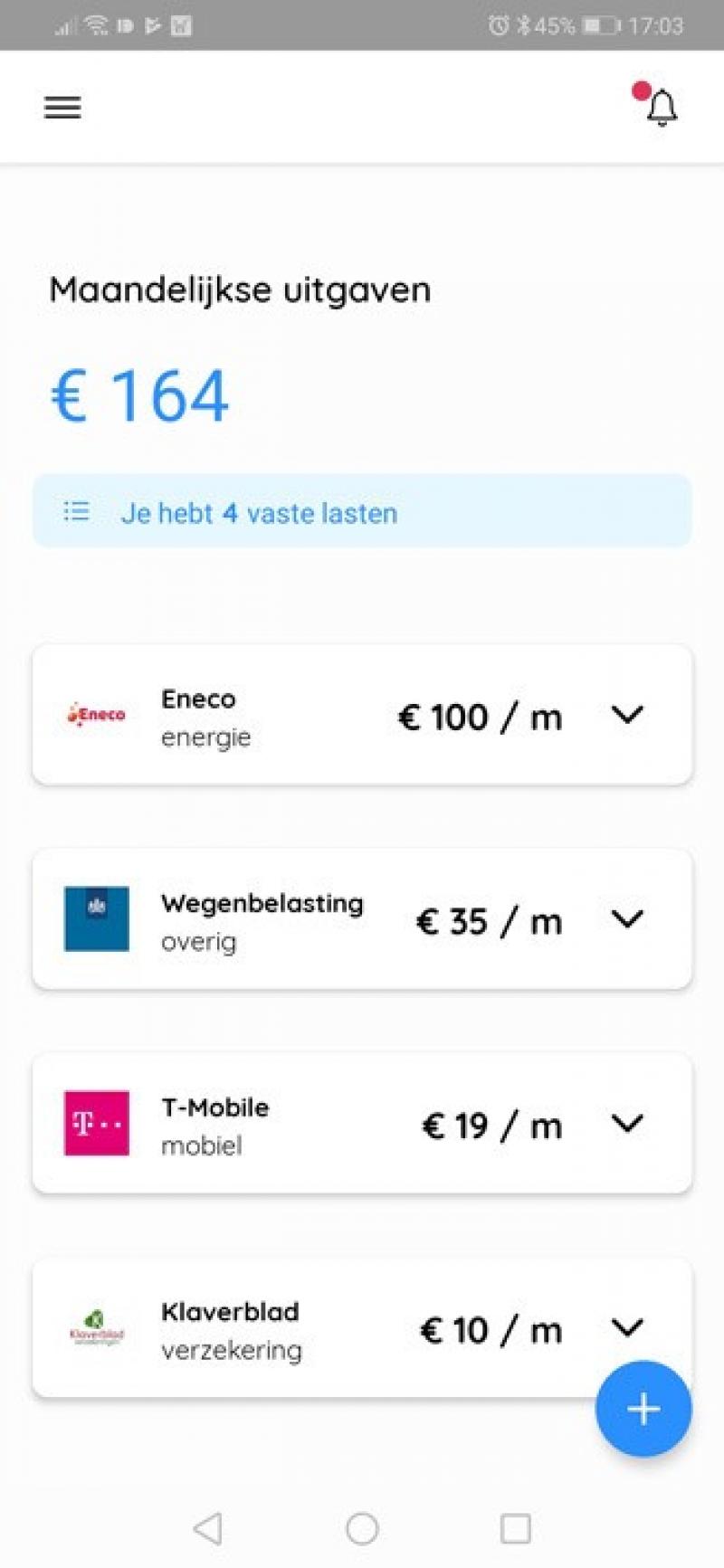 Een fijne app waarmee je dit wél handig in kaart kunt brengen is Dyme. Je moet je bank koppelen en krijgt vervolgens handige overzichten van je inkomsten en uitgaven. Het fijne aan deze app is dat je abonnement ook inzichtelijk worden gemaakt. Is het echt nodig om een abonnement te nemen op twee streamingdiensten, of kun je wat geld besparen om eentje te kiezen?