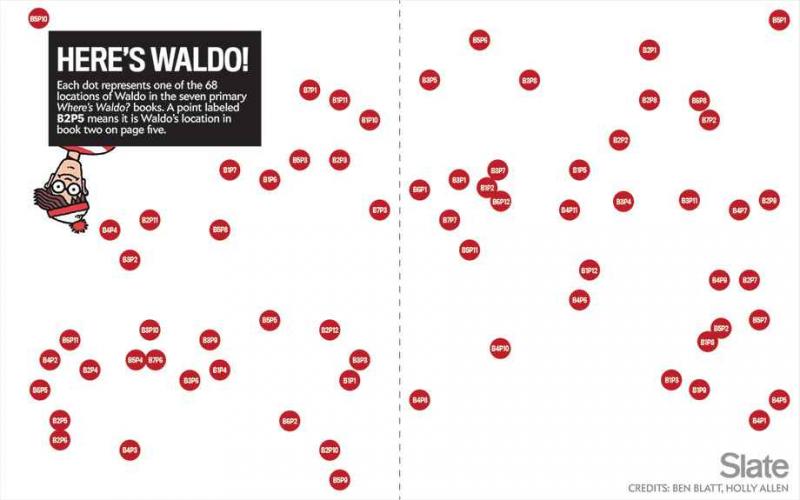 "Waar is Wally?" heeft ons allen al uren zoekplezier opgeleverd. We doen er altijd een aanzienlijke tijd over om het rood-wit-gestreept mannetje te vinden, maar hoe uniek is Wally's verstopplaats elke keer? Ben Blatt van het magazine Slate nam de proef op de som en ging op zoek naar een terugkerend patroon in de boeken van Martin Handford.