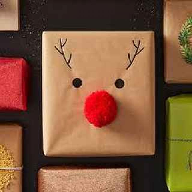 Haal de kunstenaar in jezelf naar boven en maak van je geschenk een grappig kersfiguur. Denk daarbij aan een rendier of een kerstelf. Moeilijk is het niet en je hebt er ook niet veel voor nodig. Teken een paar ogen, oren en gewei op een ander stuk papier en knip ze uit. Plak ze hierna op je cadeautje. Vergeet als finishing touch zeker de rode neus niet, anders is Rudolf het rendier niet compleet. Deze methode pas je ook toe wanneer je de elf maakt. Teken het kledingstuk van het hulpje van de kerstman op een rood stuk papier en knip het uit. Piece of cake!