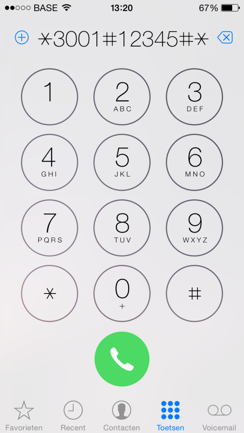 Field Test Mode kan je bereiken door te 'bellen' naar *3001#12345#*. In de linkerbovenhoek zijn de bolletjes dan al vervangen door een nummer.