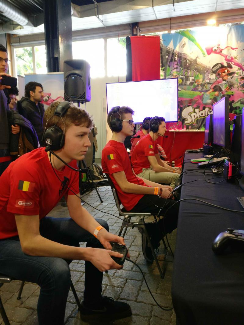 Richting Montreux, Zwitserland, voor de Polymanga Conventie, die helemaal in het teken staat van games en de Japanse cultuur. Zo'n 64 spelers en speelsters uit tien landen namen het dit jaar tegen elkaar op. Sommigen vergezeld van hun ouders, omdat ze nog niet meerderjarig zijn. Allemaal logeren ze in het prestigieuze Montreux Palace. En allemaal hebben ze een passie voor Splatoon gemeen. Ze vormen een (h)echte community die al maandenlang online samenspeelt. Dit evenement is de ideale gelegenheid om spelers uit alle hoeken van Europa eindelijk in levenden lijve te ontmoeten. Onze Belgische spelers gooien bij hun aankomst de dag voordien meteen enkele verrassende foto's van hun voorbereiding op Twitter: een tiental spelers in een hotelkamer vol kabels en consoles, voor een geïmproviseerde LAN party.