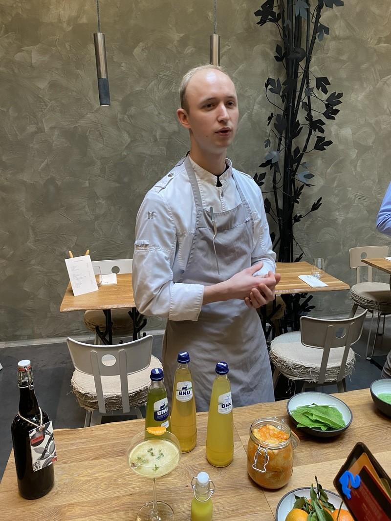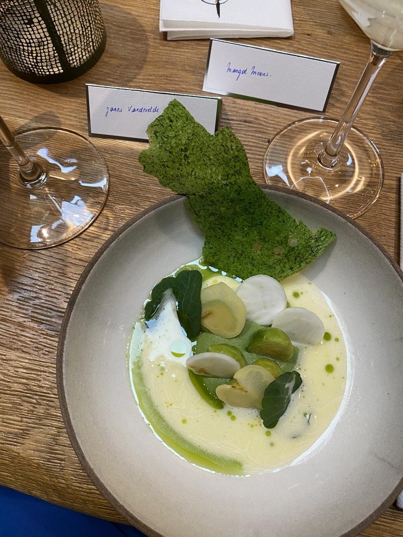 Tijdens de maandelijkse lunch mag je je verwachten aan zes gangen, in de vorm van het spoon & bowl-concept. Bij San geen ingewikkelde regels rond servies, je eten wordt geserveerd in een kommetje en speel je simpelweg naar binnen met een lepel. Joël heet de gasten zelf welkom, waarna hij een woordje uitleg geeft bij de gerechten die ze dadelijk zullen verorberen. Zo leren ze zelf hoe ze ook thuis in de keuken het afval kunnen beperken, weet Joël.