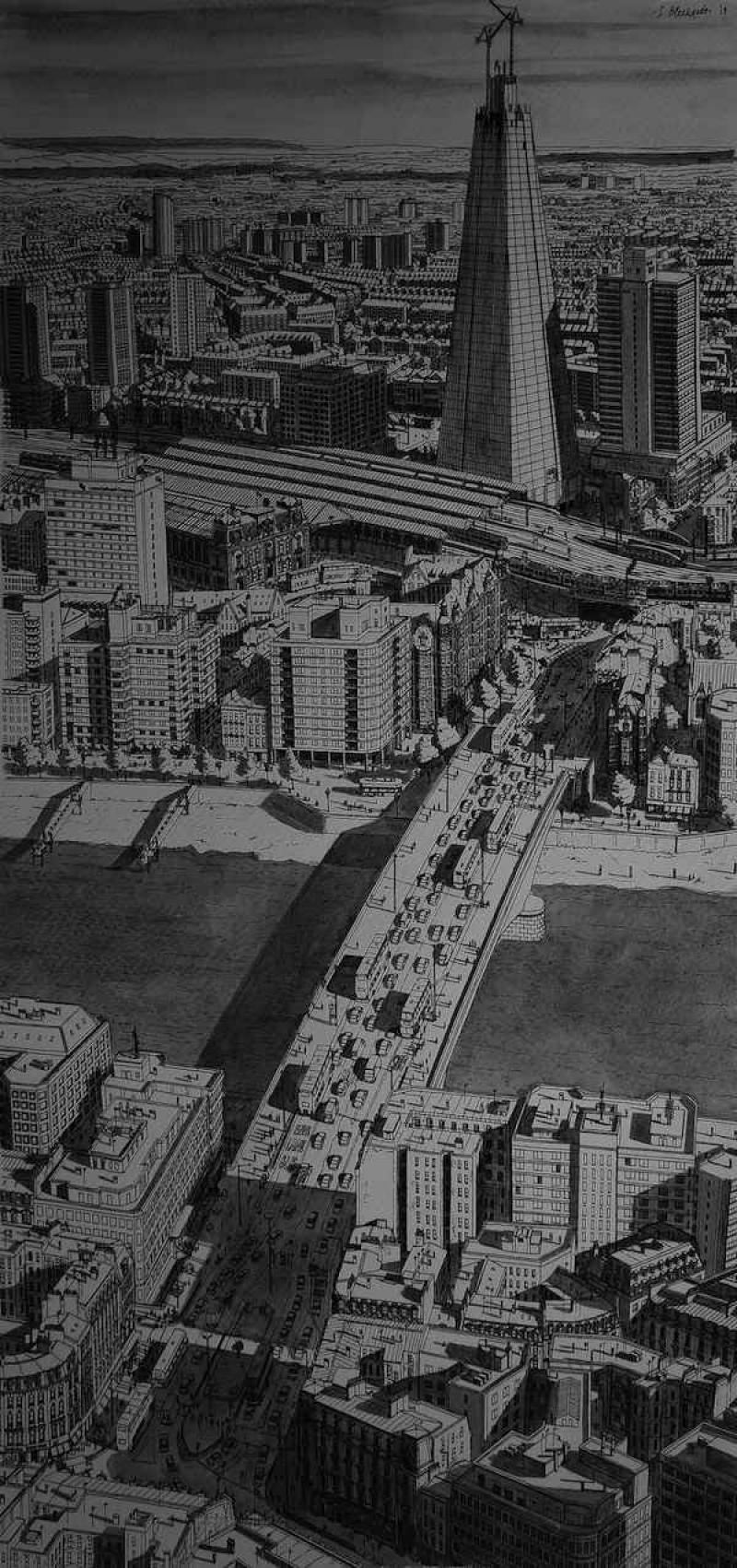 Hij heeft al onberispelijke tekeningen gemaakt van Parijs, New York, Praag en Napels. De tekeningen zijn geen directe recreaties van de steden, maar eerder impressionistische voorstellingen hoewel ze nog vrij dicht bij de werkelijkheid staan.