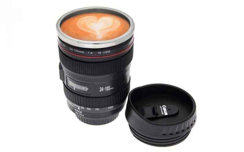 Reizen in stijl doe je met deze koffiebeker in de vorm van een cameralens. Want ook je dierbaarste drankje in de ochtend verdient een mooi omhulsel.