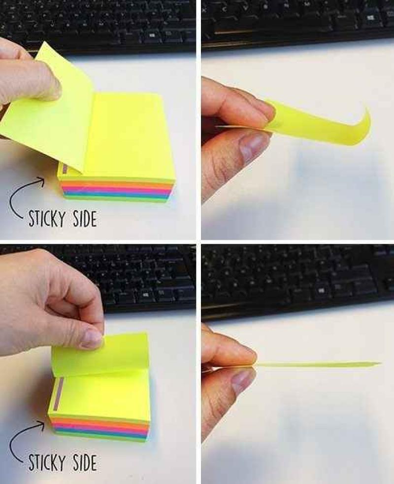 De Nederlandse blogger Martin Schapendonk weet exact wat we mis doen. De meeste mensen trekken het notitiepapier van beneden naar boven af het post-itblok. Hierdoor krult de plakrand en dwarrelen de stickers steevast op de grond.