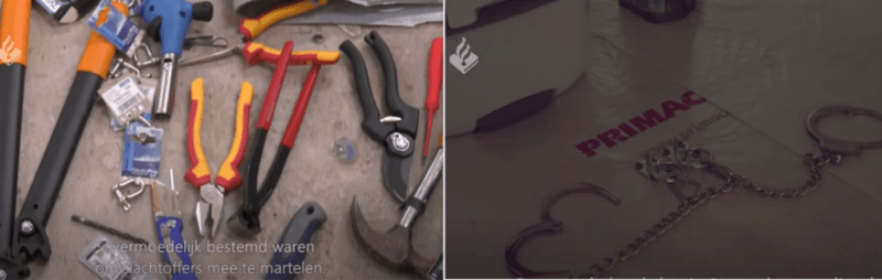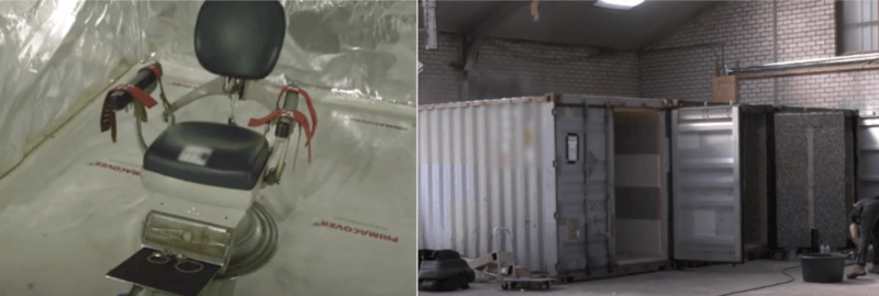 Van de zeven containers, die in een loods stonden, zouden er zes dienstdoen als cel en was er één ingericht als martelkamer. In die martelkamer bevond zich een tandartsstoel waarin de gevangene kon worden vastgezet en kon gebruik worden gemaakt van "martelgereedschap" zoals een snoeischaar, een takkenschaar, een takkenzaag, scalpels, tangen, handboeien en vingerboeien. Zwarte katoenen zakken konden gebruikt worden om over het hoofd van het slachtoffer te worden getrokken.