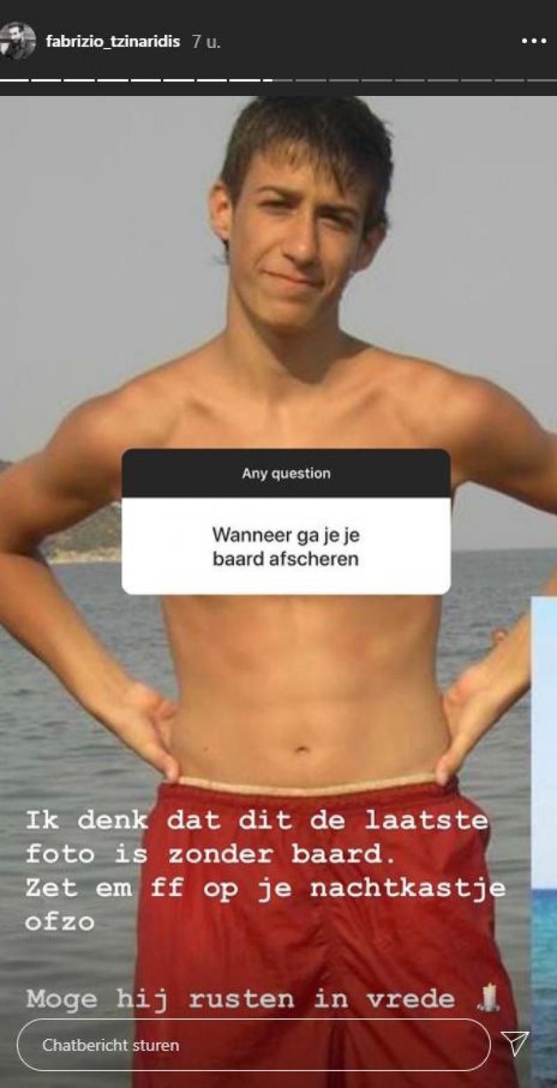 Sinds hij in 2018 bekend werd door Temptation Island' hebben we Fabrizio Tzinaridis altijd met baard gezien. Maar dat gezichtshaar is er uiteraard niet altijd geweest. Op Instagram vroeg iemand hem wanneer hij zijn baard gaat afscheren. Ik denk dat dit de laatste foto is zonder baard. Moge hij rusten in vrede, antwoordde hij met een foto van enkele jaren geleden.
