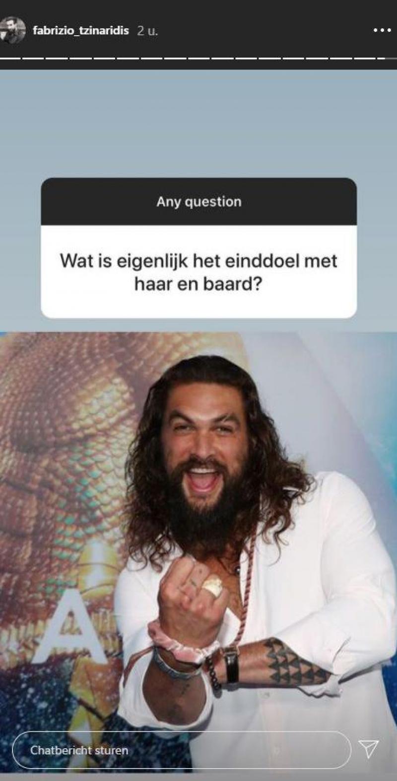 Het is duidelijk dat de 27-jarige Temptation'-verleider niet van plan is om afscheid te nemen van zijn baard. Integendeel, hij wil dezelfde weg op gaan als de Amerikaanse acteur Jason Momoa (41), die bekend is om zijn rol als Khal Drogo in Game of Thrones' en Arthur Curry in Aquaman'. Hoe meer haar, hoe beter, dus.