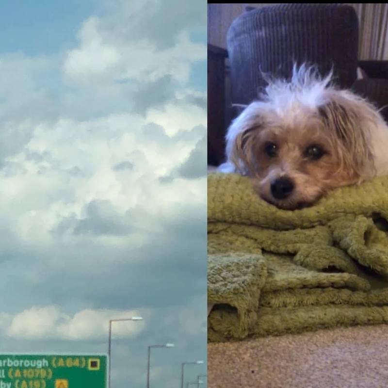 Meteen na de dood van Sunny maakte de 19-jarige vrouw uit York (Engeland) met haar vriend Tom een ritje met de wagen om te bekomen. Vanop de passagiersstoel keek ze naar de wolken en spotte ze plots iets wat leek op haar hond die op haar neerkeek. Even voordien zei ik nog tegen Tom dat ik van haar een teken wou dat alles goed is met haar. Ik keek naar de wolken en het voelde aan alsof zij het was, dat ze vanuit de wolken naar mij keek. Het gaf me zo'n fijn en warm gevoel. Het was haar manier om te zeggen dat ze oké is, vertelt ze aan Daily Mail.