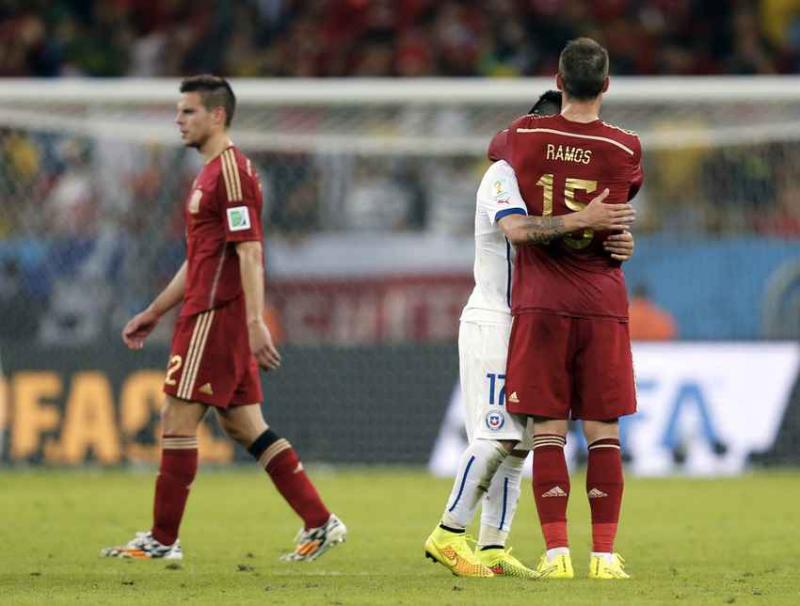 Chili versloeg regerend wereldkampioen Spanje en overal zag je geknuffel. Zowel bij de ontgoochelde Spanjaarden als bij de feestvierende Chilenen.
