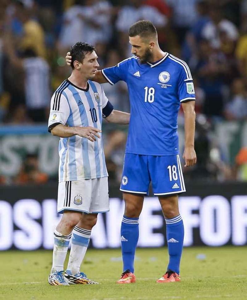 Nationale helden als Tim Cahill van Australië en Arjen Robben van Nederland omhelsden elkaar na een hard bevochten strijd op het veld. Rafael Marquez van Mexico omhelsde Guillermo Ochoa - de onneembare vesting van team Mexico - na zijn ongelooflijke prestaties in het doel tegen Brazilië op dinsdag. En voor je het weet knuffel je een god als klein mannetje. Haris Medunjanin van Bosnië-Herzegovina kreeg een knuffel van Lionel Messi.