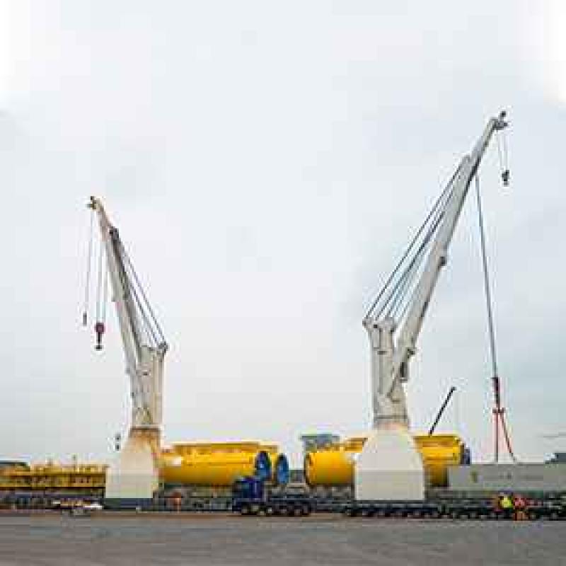 Ik ga een kijkje nemen op de kaai waar we de funderingsplaten aan boord zullen laden.