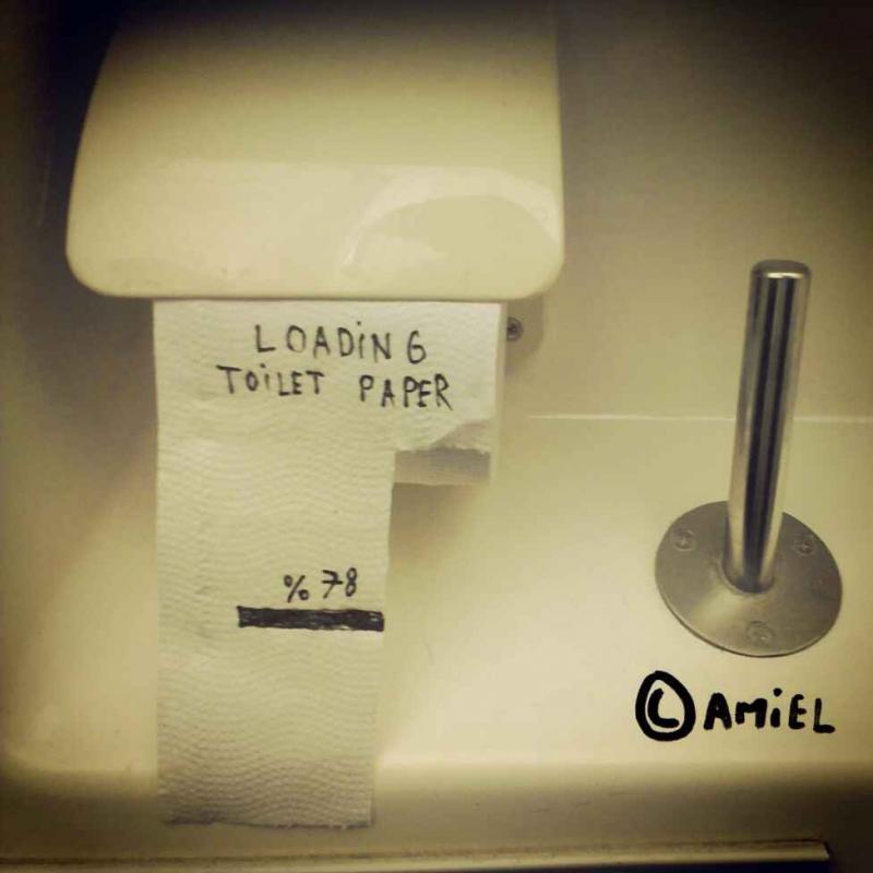 Kamiel noemt zichzelf een professioneel onnozelaar, wat duidelijk te merken is in zijn tekeningen - of dat nu op toiletpapier is of niet. Hij tekent vooral om zijn medemens te doen glimlachen, en dat lukt hem met glans.