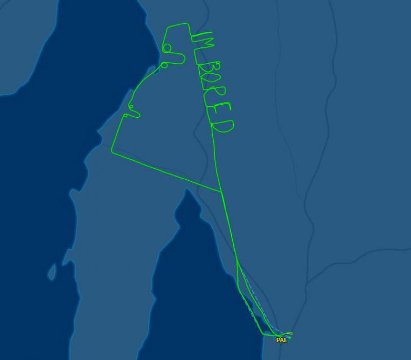 De piloot paste zijn gps-coördinaten immers meermaals aan, om uiteindelijk tot een boodschap te komen die zichtbaar is in het trajectoverzicht. Zo zien we hoe hij twee penissen tekende' en de zin I'm bored' (Ik verveel me) schreef'.
