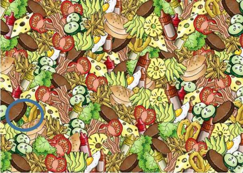 De zoekpuzzel werd gelanceerd door het food delivery bedrijf Deliveroo en is van de hand van de Britse Sally-Ann Heron. "Tijdens het tekenen bleef ik zelf vergeten waar de augurk stond", aldus de 25-jarige illustratrice in een persbericht. Dat belooft!