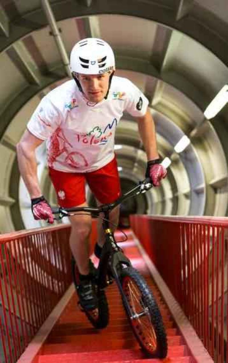 De Poolse fietsacrobaat Krystian Herba (foto) heeft een nieuw wereldrecord gevestigd door alle 512 trappen van het Atomium zo snel mogelijk te beklimmen, met de fiets. Hij sprong daarbij met zijn tweewieler van trede tot trede zonder de grond te raken en deed er 14 minuten en 4 seconden over.