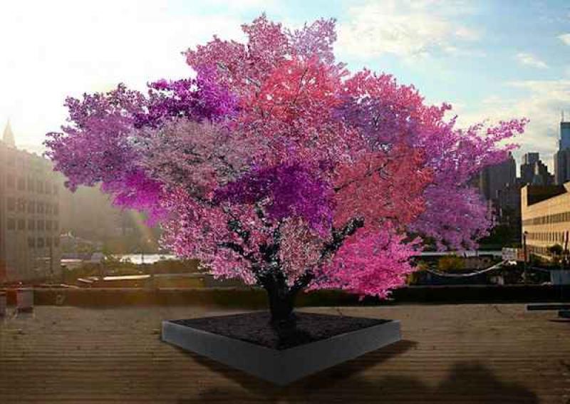 Kunstenaar en professor aan de Syracuse University, Sam Van Aken, heeft een kleurrijke boom geschapen die veertig verschillende soorten fruit kan produceren.