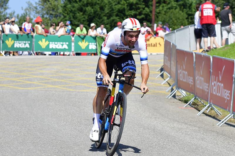 Topfavoriet Campenaerts, die als zesde aan de start kwam in Neuchâtel, raakte de stoeprand bij het uitkomen van één van de vele bochten op het technische parcours en schoof zo weg. Hij kon wel zijn weg verderzetten en finishte na de 3,8 kilometer uiteindelijk ontgoocheld met een tijd van 6:09.