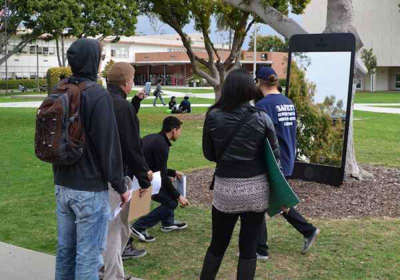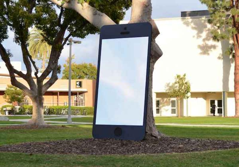 Een zeer knap grafisch ontwerper en student aan de California State University kwam met de ultieme manier om selfies te maken. Hoewel het misschien niet de oorspronkelijke bedoeling was van Gabe Ferreira, de kunstenares, maken de meeste mensen gebruik van de 7 meter hoge houten iPhone om een selfie te nemen.