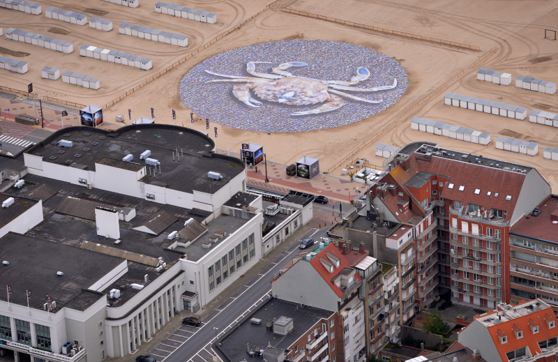 Op het strand van Knokke-Heist rust momenteel een reuzenkrab, opgebouwd uit honderden foto's. Het gaat om een project van de Antwerpse fotokunstenaar Wim Tellier dat de naam «Time» meekreeg.