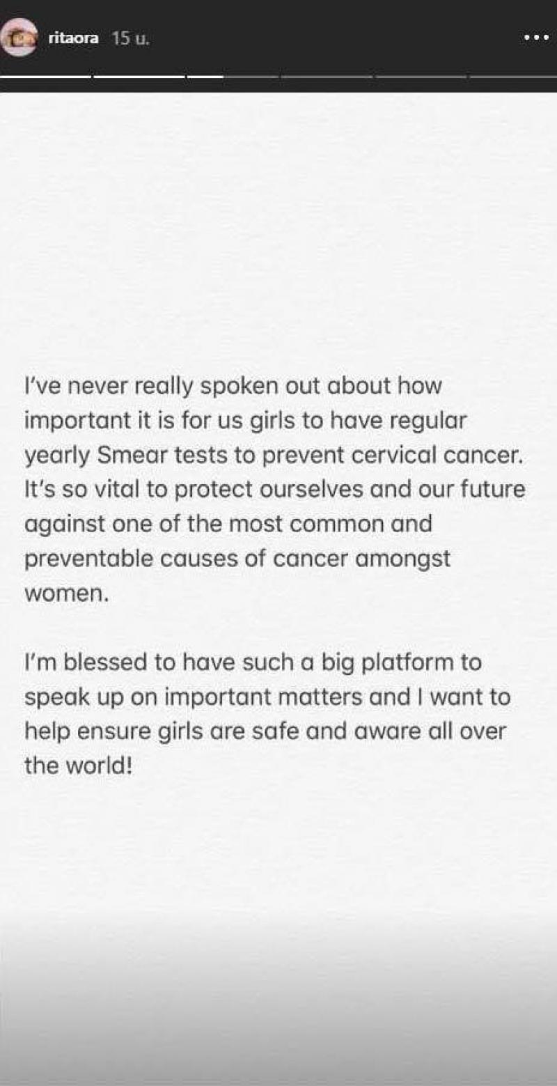 Aangezien baarmoederhalskanker goed te voorkomen is, spoort ze vrouwen aan om zich regelmatig te laten testen. Ik heb me nooit echt uitgesproken over hoe belangrijk het voor ons, vrouwen, is om op jaarlijkse basis een uitstrijkje te laten nemen om baarmoederhalskanker te voorkomen. Het is essentieel om onszelf en onze toekomst te beschermen tegen een van de meest voorkomende en vermijdbare oorzaken van kanker bij vrouwen. Ik ben gezegend om zo'n groot platform te hebben om belangrijke zaken in de kijker te zetten en er mee voor te zorgen dat vrouwen over de hele wereld veilig zijn en ervan op de hoogte zijn, klinkt het.