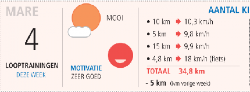 Onderweg probeer ik te wennen aan het idee dat ik met de gevorderde groep zal meelopen. Het woord gevorderde' op zich was al behoorlijk intimiderend, maar het in mijn ogen- zorgwekkend laag vetpercentage en verdacht energieke blik van mijn ervaren medejoggers was dat zo mogelijk nog meer. Nochtans zal ik over drie weken een marathon lopen en zou ik normaliter dus ook een gevorderde loper moeten zijn, zo merkte iemand gevat op. Soms lijkt deze hele missie een mislukte grap.
