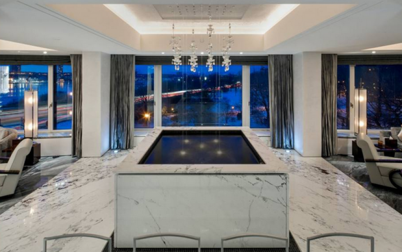 Om je nog wat jaloerser te maken, hier een lijst van de "juwelen" van de prins zijn woning: een fitnessruimte, een spa, een lounge zwembad, drie kamers met kogelvrij glas, een kapsalon, een terras met uitzicht op Central Park. Op de bovenste verdieping is er een sushi-bar met uitzicht op de Hudson River, een aquarium met zeewater en een jacuzzi voor zes personen. En dat is zonder de elektronische apparaten meegerekend met hun "smart technology".