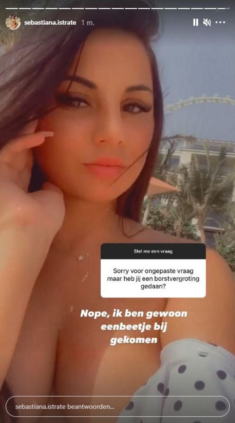 Gisteren kreeg ze van een fan een vraag over haar borsten. Sorry voor de ongepaste vraag, maar heb jij een borstvergroting ondergaan?, klonk het. Nee, ik ben gewoon een beetje bijgekomen, antwoordde Sebastiana.