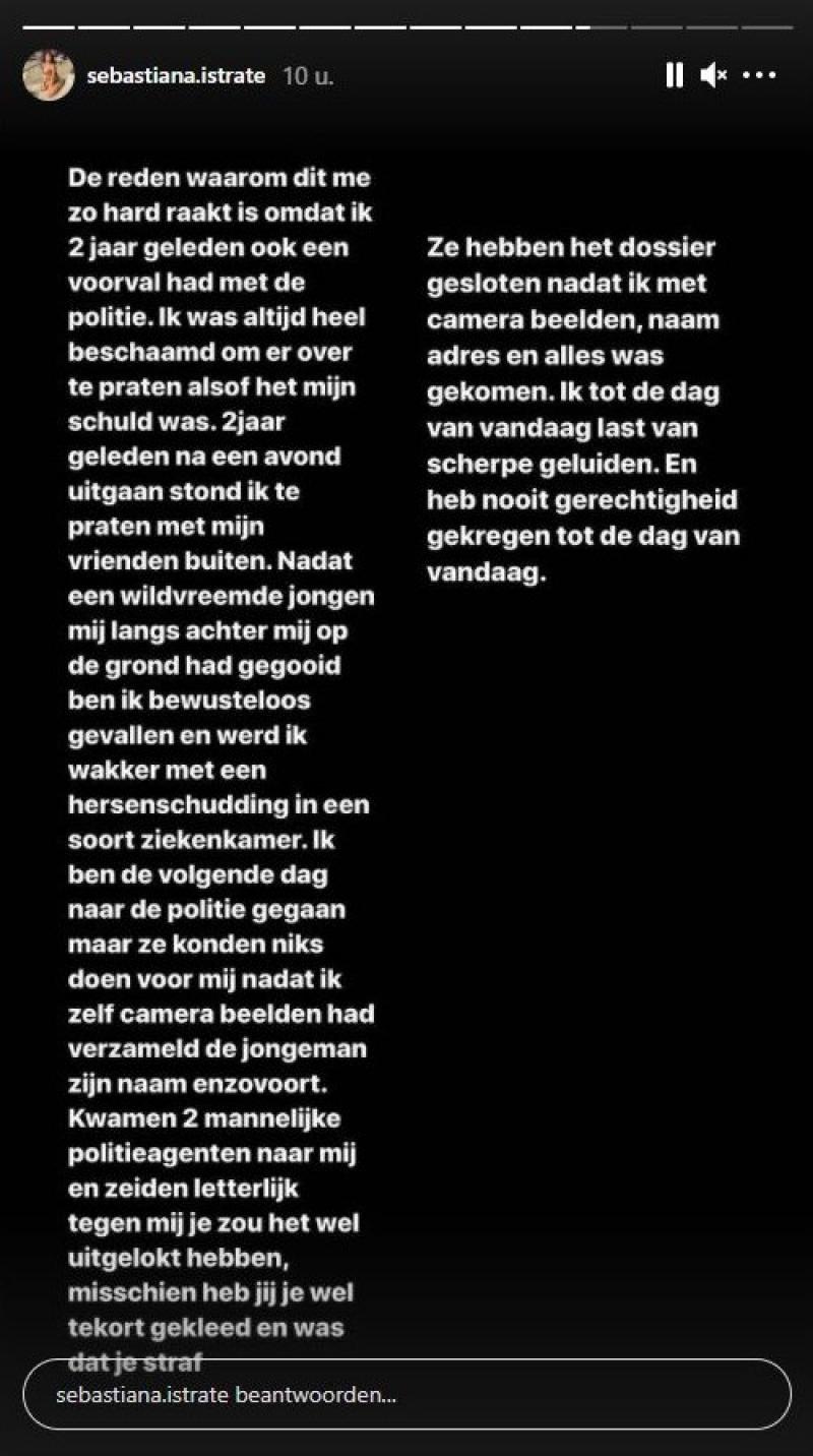 Sebastiana ging de dag na de feiten naar de politie, maar zonder camerabeelden konden zij niets doen. Twee mannelijke agenten zeiden tegen mij dat ik het wel uitgelokt zou hebben, klinkt het.