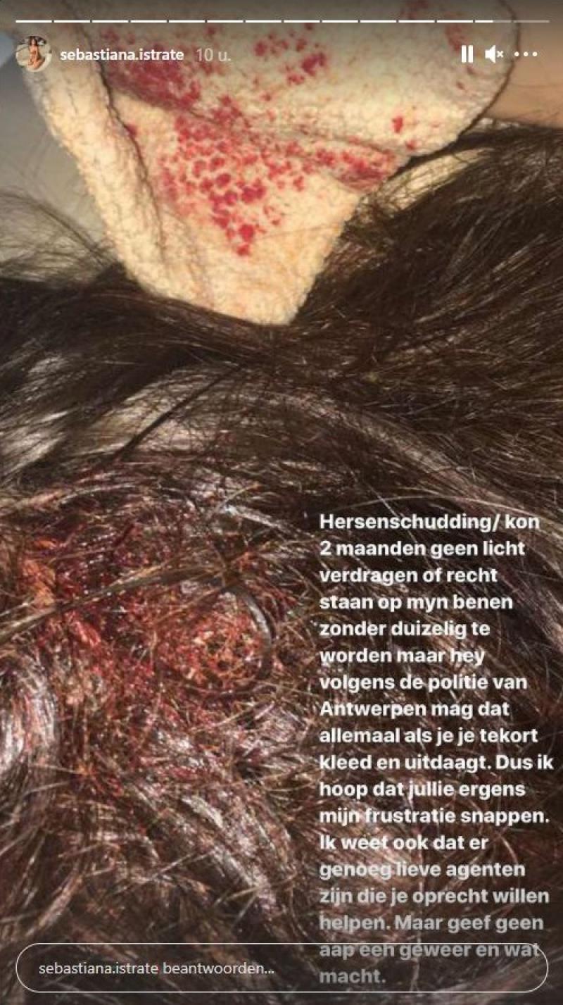 Het incident speelde zich twee jaar geleden af tijdens een avondje uit. De 24-jarige brunette uit Aartselaar werd door een man langs achter aangetrapt waardoor ze met haar hoofd op de grond viel. Ze werd wakker met een hersenschudding in het ziekenhuis. Ik kon twee maanden geen licht verdragen of rechtstaan zonder duizelig te worden, schrijft ze op Instagram.