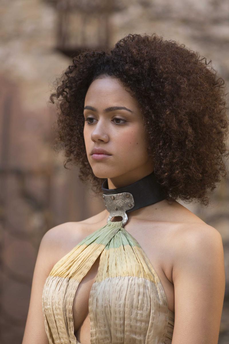 Nathalie Emmanuel: Opgemerkt in Misfits', vertolkt Missandei, de talenknobbel in dienst van Daenerys. Meestal discreet, maar ze is niet op haar mondje gevallen.