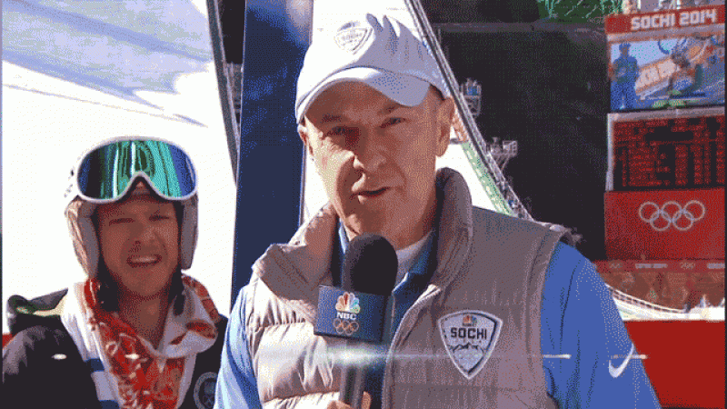 De Amerikaanse skiër Todd Lodwick kreeg veel media-aandacht toen hij uitverkoren was om de Amerikaanse vlag te dragen op de Olympische Winterspelen in Sotsji. De skiër heeft blijkbaar de smaak te pakken en wil zo vaak mogelijk op televisie verschijnen. Toen NBC reporter Randy Moss live een verslag gaf over de blessures van Lodwick en zijn medaillekansen had hij geen idee wie er nog geen meter achter hem stond. Lodwick wandelde voorbij en gaf zijn eigen update over zijn schouderblessure op de achtergrond.