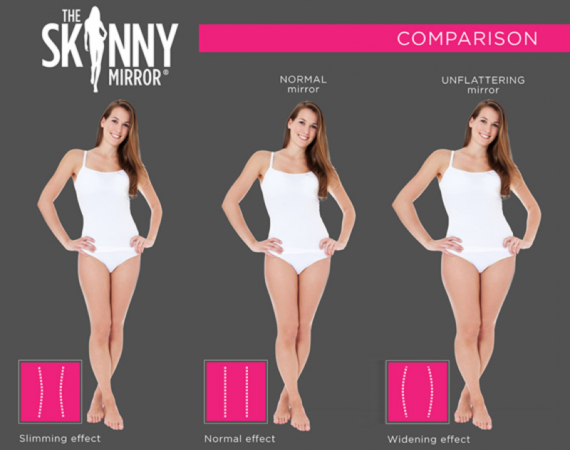 The Skinny Mirror, een bedrijf uit Californië, produceert sinds 2012 spiegels waarvan het glas lichtjes gebogen is waardoor je tot 5 kilo slanker lijkt dan je eigenlijk bent. De spiegels worden steeds vaker in paskamers van winkels geplaatst met als doel het zelfvertrouwen van de klanten een boost te geven zodat ze meer kopen.