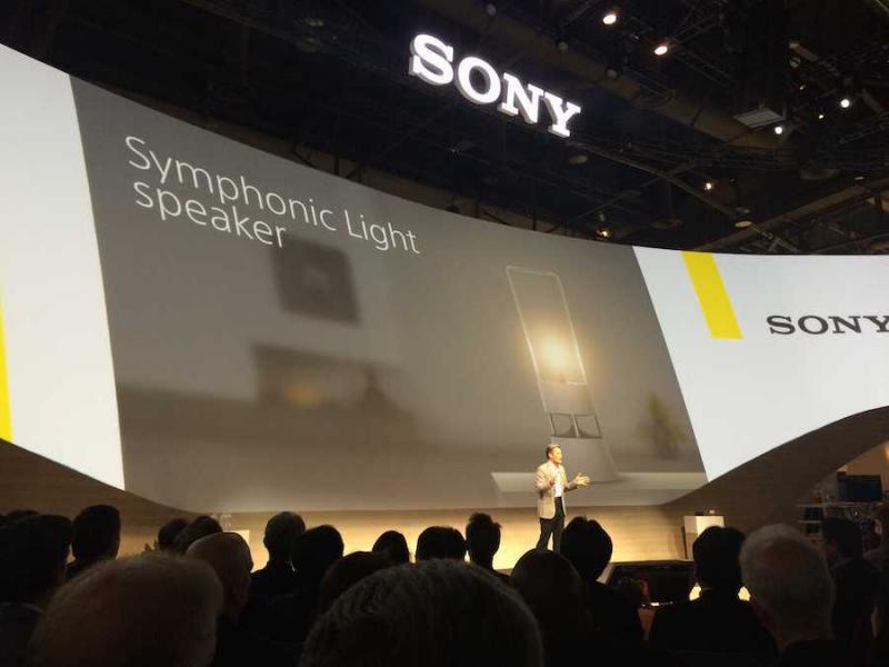 Sony toverde ook een onverwacht accessoire tevoorschijn: de Symphonic Light Speaker is eigenlijk een LED-lamp die ook een speaker is. Volgens Hirai stroomt de muziek alle richtingen uit, wat anders is dan bij normale luidsprekers. En het heldere glas rondom de lamp kan een hogere geluidsfrequentie weergeven. Het bedrijf wilde verder nog niet te veel kwijt over het accessoire.