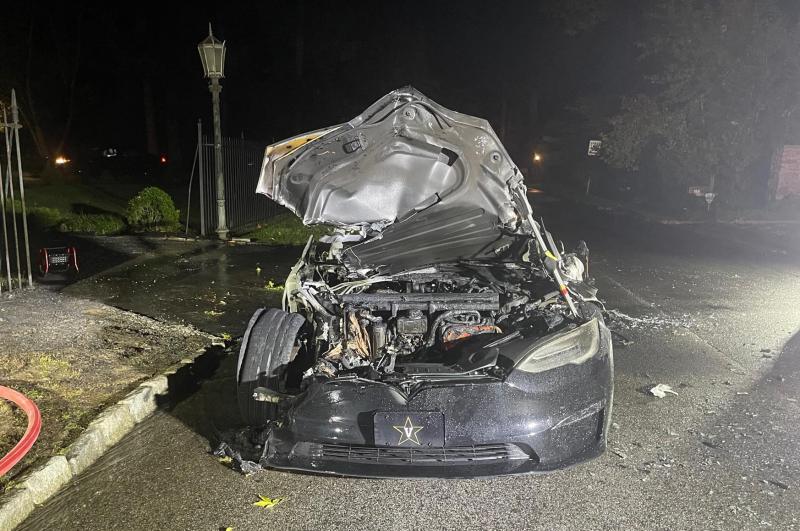 In een inmiddels verwijderde Facebookpost verklaarde de lokale brandweer dat de Tesla wel degelijk in brand stond en dat de brandweerlieden twee uur nodig hadden om de wagen volledig te blussen. Foto’s op de website van het brandweerkorps tonen dat het grootste deel van de carrosserie en binnenkant van de auto volledig verbrand is.