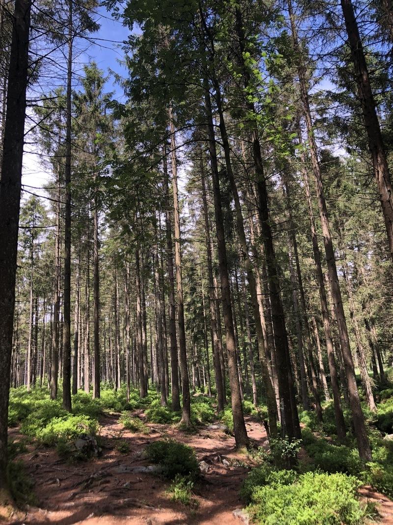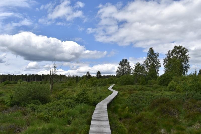 Waar ik me had verwacht aan eindeloos lange houten paadjes over monotoon veenland, word ik getrakteerd op een steeds wisselende flora. Gedurende 15 kilometer leiden mijn voeten me nu eens door dennenbossen waar de grond verborgen gaat onder een zacht naaldendeken, dan weer door bloeiende weilanden en beukenbossen.