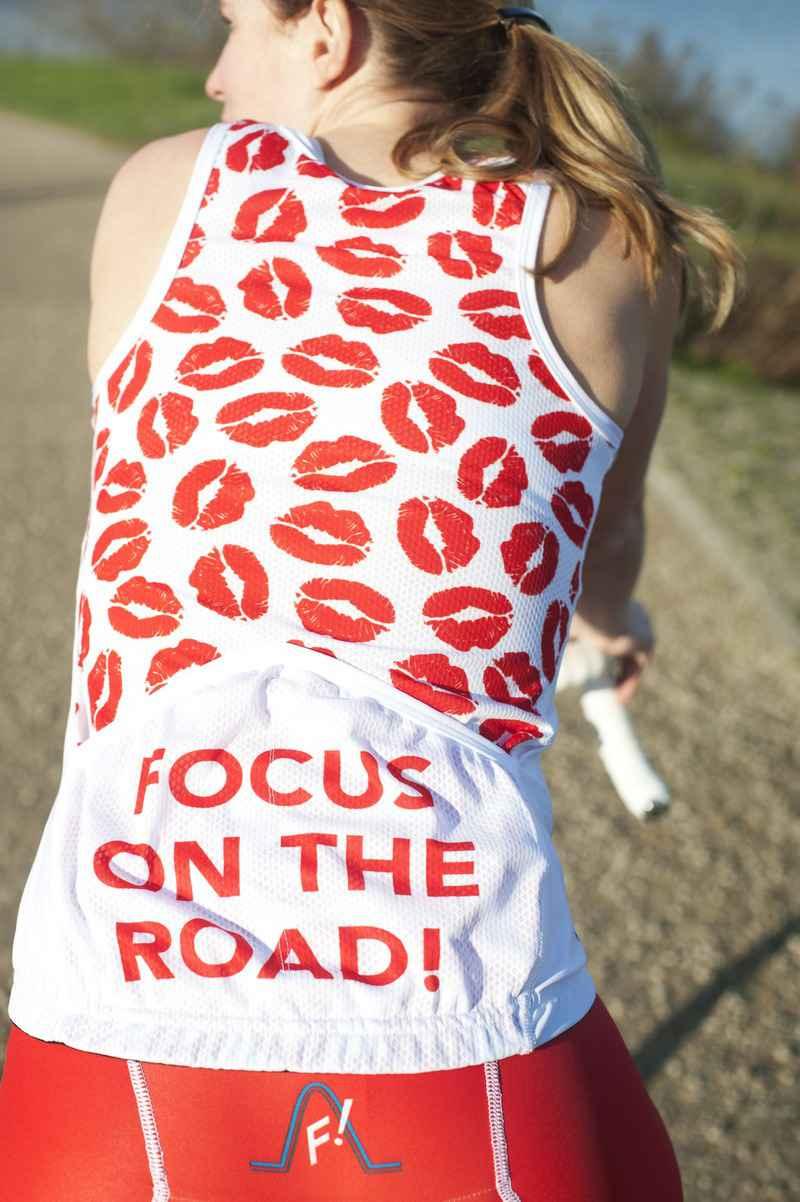 Tijdens een fietstocht in Calpe had ik een van mijn truitjes aan - bedrukt met lipjes en het opschrift focus on the road'. Plots passeerden er vier Belgen die we later opnieuw tegenkwamen toen we iets gingen drinken. De mannen hadden mij duidelijk gezien. We dachten dat het de bolletjestrui was, maar het is nog beter: het is de lipjestrui!, riepen ze me toe. Ik vond die reactie wel leuk. Terwijl ze vroeger aan het lachen waren, krijg ik nu geïnteresseerde blikken, klinkt het.