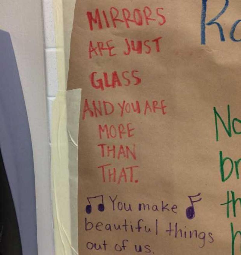 De posters staan vol met quotes en boodschappen om zelfvertrouwen en je eigenwaarde te bevorderen. Op die manier willen ze studenten aanmoedigen om wat minder in de spiegel te kijken en na te denken over hun kwaliteiten, naast hun uiterlijk. "Spiegels tonen hoe we er uit zien, niet wie we zijn", is één van de quotes.