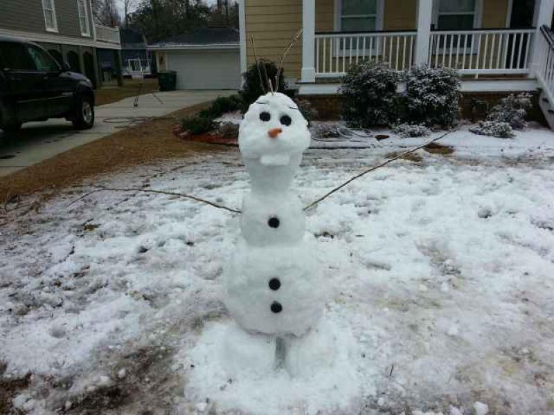 Hoewel bijna heel Amerika geteisterd wordt door extreem winterweer zijn er nog plaatsen over in het land waar nog geen vlokje sneeuw gevallen is. Dat vond een meisje uit South Carolina niet zo leuk en al helemaal niet toen ze de film Frozen had gezien. Ze wenste vurig dat als ze de volgende dag wakker werd, er een heus sneeuwtapijt zou liggen. De weergoden luisterden niet naar haar verzoek, dus besloot haar vader het heft maar in eigen handen te nemen. De man werkte de hele nacht door om de wens van zijn dochter te vervullen. Het resultaat was een heerlijk sneeuwtapijt en een gelukkige dochter.